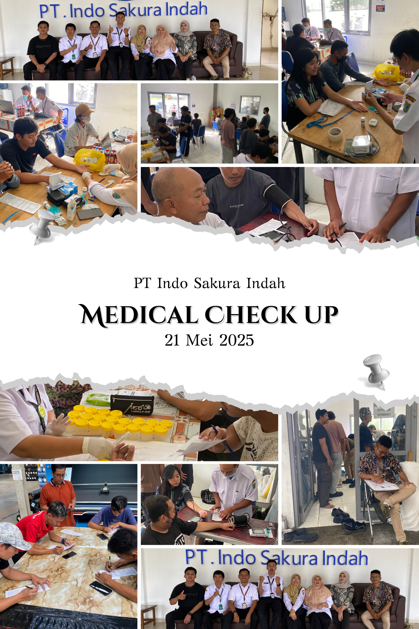 PT Indo Sakura Indah telah melaksanakan kegiatan Medical Checkup (MCU) bagi seluruh karyawan sebagai bentuk komitmen dalam menjaga kesehatan dan keselamatan kerja. Kegiatan ini berlangsung pada tanggal 21 Mei 2025
